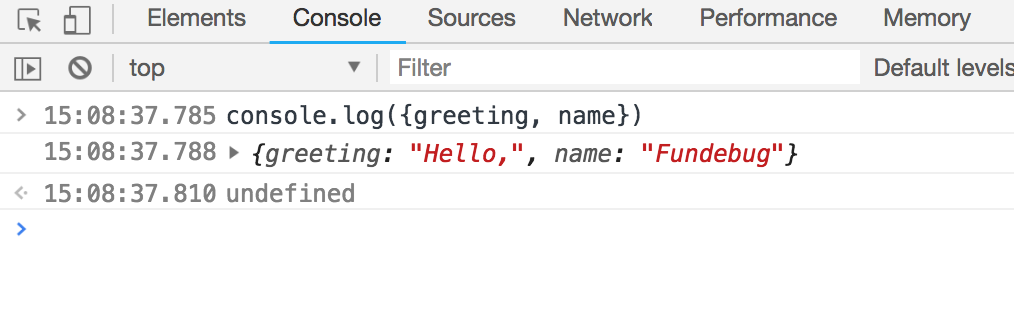 在使用 console.log();的时候,不仅仅打印变量,而是要打印对象,用大括号({})将变量包围起来。这样的优点是不仅会把变量的值打印,同时还会将变量名打印出来。