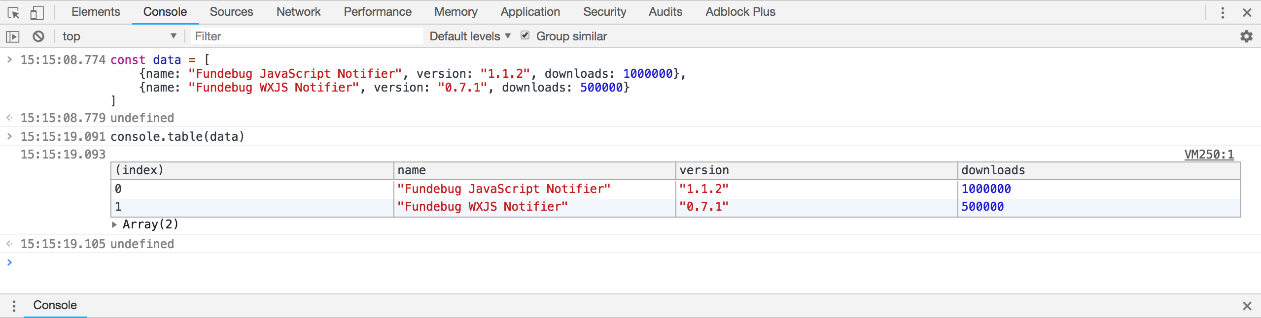 使用 console.table 来打印多条目数据